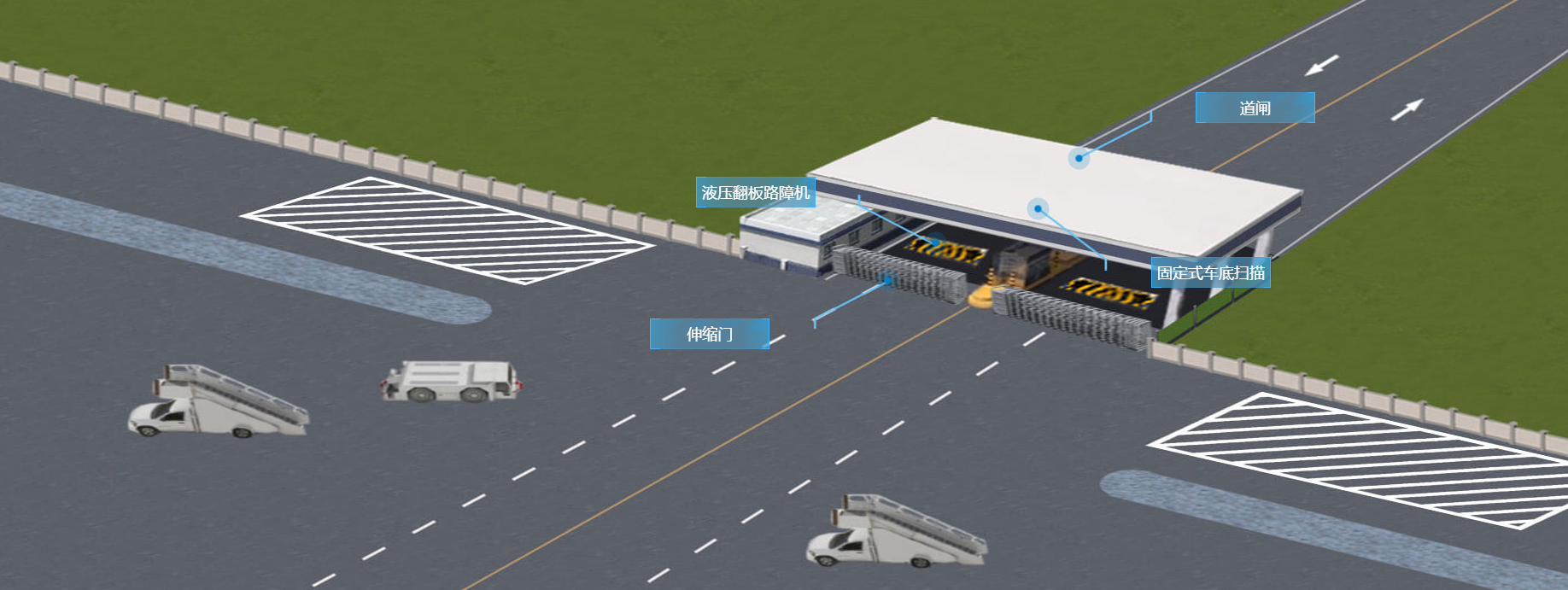 工廠直發 · 品質保證 · 全國聯保機場道口解決方案主要為進出港航班提供安全的出入口,以及提供機場安全檢查、機場貨物運輸、機場貨物檢查等服務。機場道口做為機場紅線的重要組成部分,在機場控制區通行管制,進出人員、物品管控,保障機場安全運行上發揮著重要作用,民航局規章在道口的安保設施設備配備方面有著嚴格的要求。